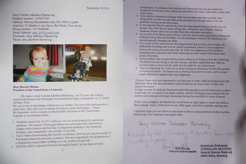Dzwoniła do Białego Domu, prosiła o pomoc Ambasadę USA w Oslo, ale żadnej nadziei na odzyskanie jej amerykańskiego dziecka nie otrzymała. Film na ten temat można obejrzeć TUTAJ.